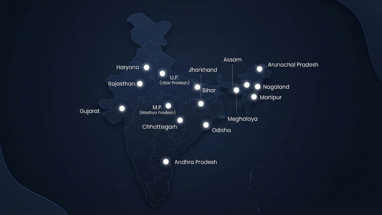 Assam | Jharkhand | Bihar | Rajasthan | Madhya Pradesh | Odisha| Nagaland | Meghalaya | Manipur | Arunachal Pradesh | Haryana | Gujarat | Chhattisgarh | Uttar Pradesh | Andhra Pradesh